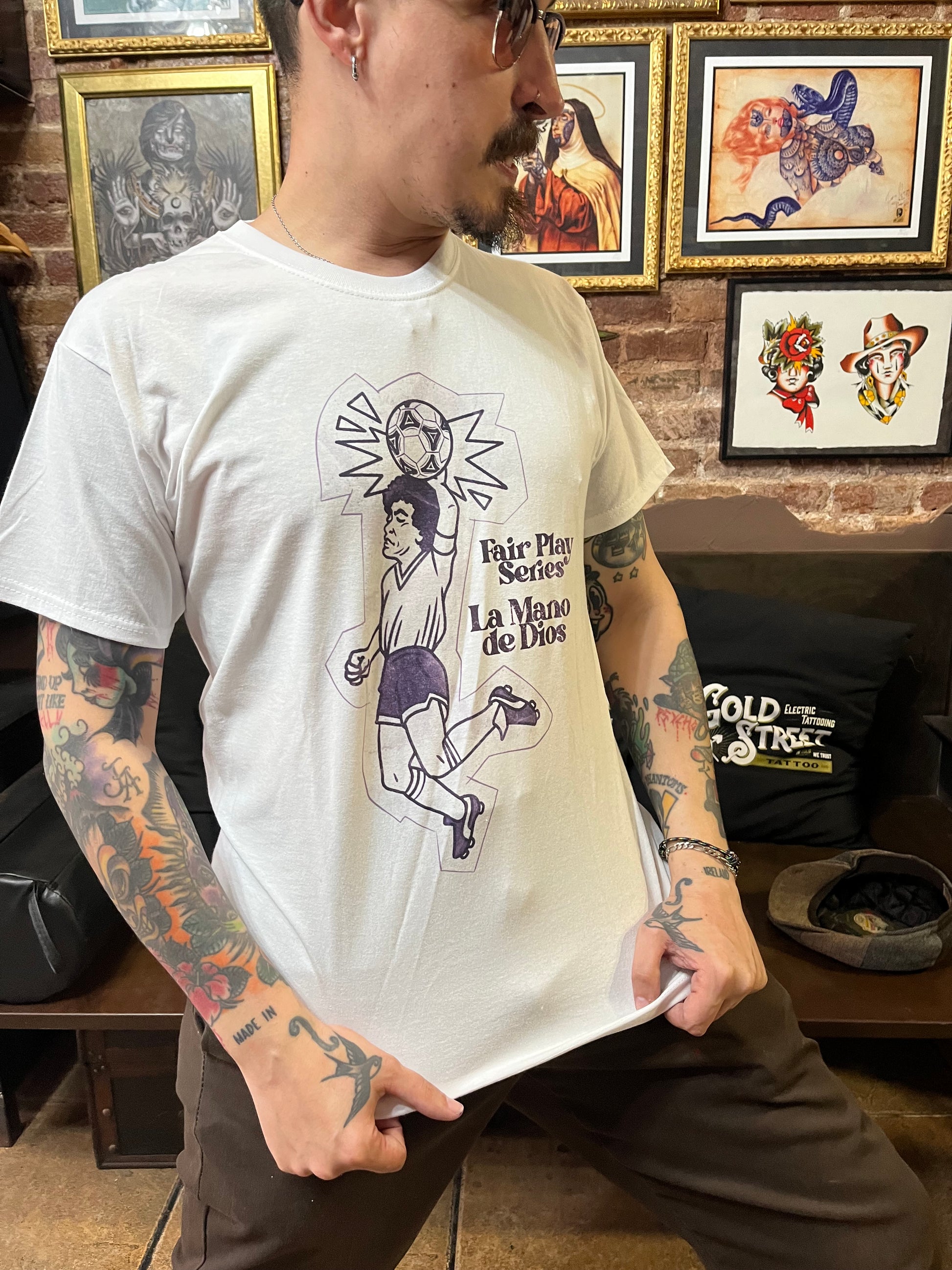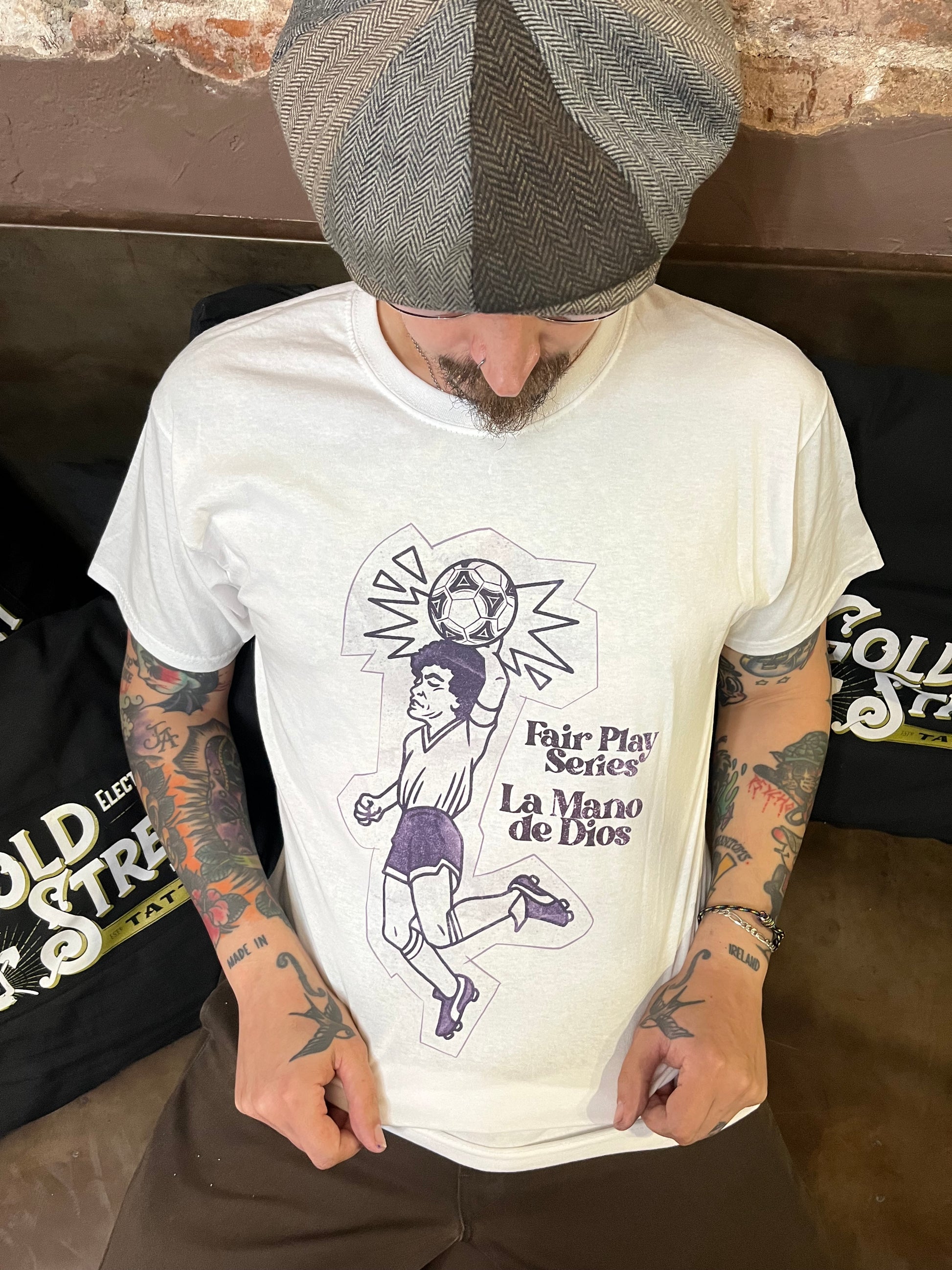 T-shirt with La Mano de Dios, Maradona design on the front.